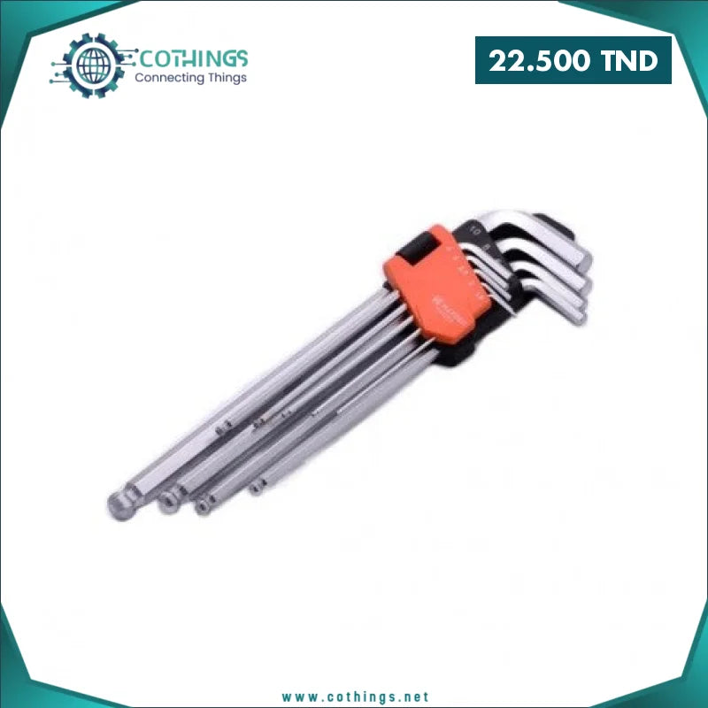 Jeu de clés hexagonales longues offrant un excellent couple et un accès facilité aux vis profondes.