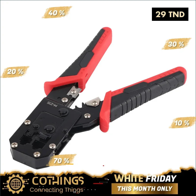 La pince réseau WJ-315 est un outil polyvalent conçu pour la création et la maintenance de câblages réseau. Elle permet de sertir, dénuder et couper facilement les câbles RJ45, RJ11 et RJ12, garantissant des connexions fiables et professionnelles.