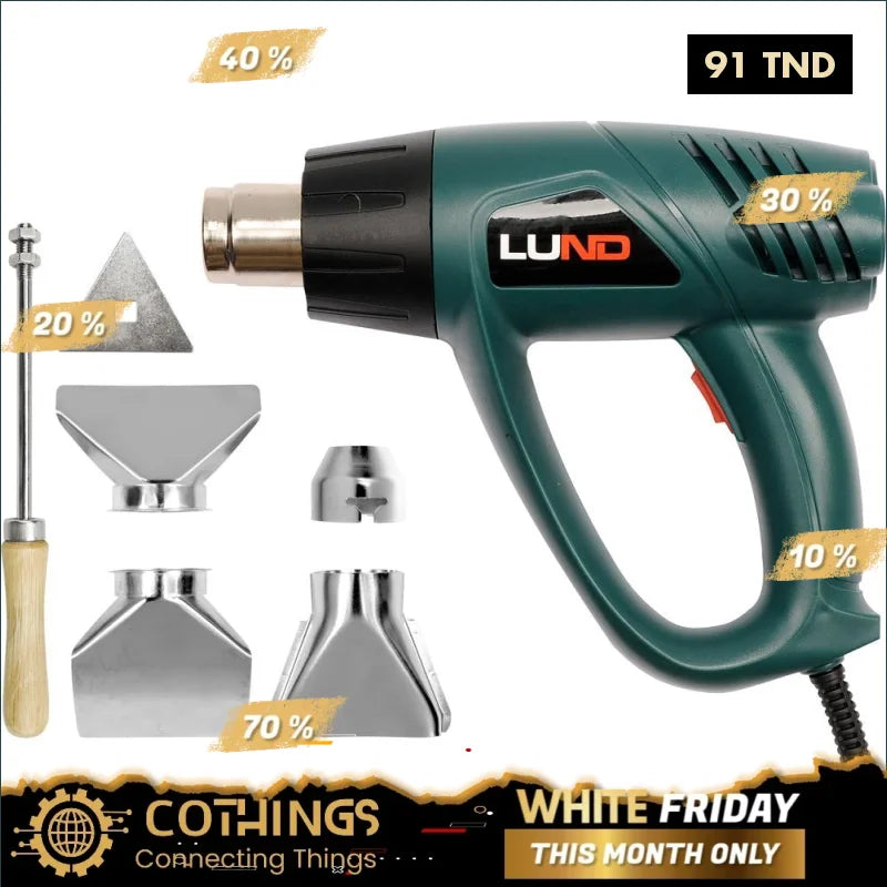 Ce pistolet à air chaud puissant de 2000W est l’outil idéal pour le décapage de peintures et vernis, le façonnage de matériaux plastiques, le rétrécissement à l’air chaud, ainsi que pour le brasage et le soudage léger.