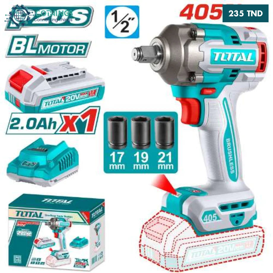 TOTAL Clé à Choc Sans Fil Carré 12,7 mm 405 Nm Brushless 20V Pro TIWLI20455