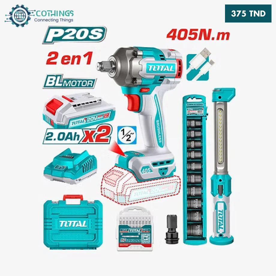 Total Kit Clé À Choc Sans Fil 1/2 Pouce 405 Nm 20V LiIon TOSLI23056