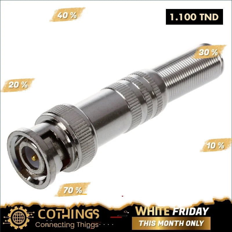 Une fiche BNC est un connecteur coaxial utilisé pour transmettre des signaux vidéo, radiofréquence (RF), et d’autres types de signaux électroniques. Elle permet une connexion facile sans nécessiter de soudure, simplement en vissant le câble.