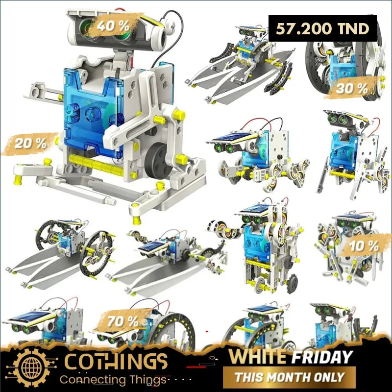 Le Robot Solaire permet aux enfants d'assembler facilement 13 modèles de robots différents sans nécessiter d'outils. C'est un excellent moyen d’éveiller leur curiosité pour la science et de stimuler leur créativité.
