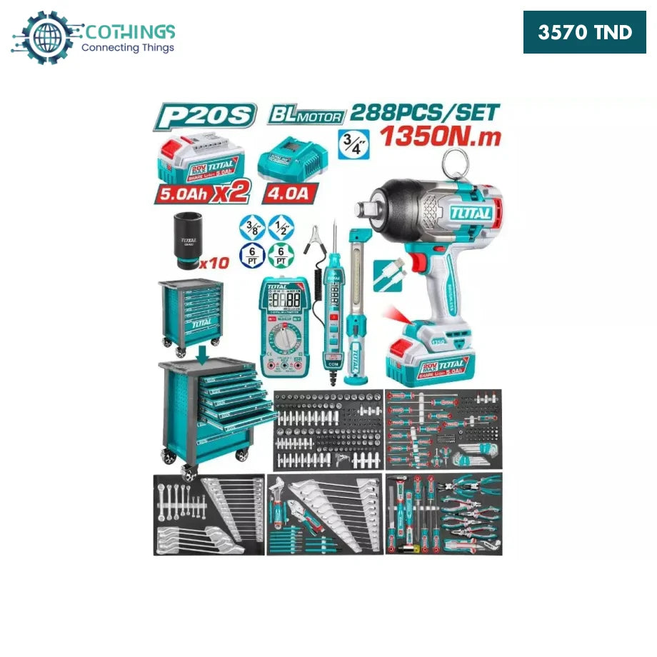 TOTAL P20S Coffret 288P 20V Brushless Clé À Choc Sans Fil Servante THPTCS82882