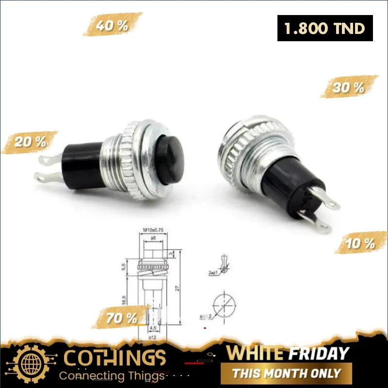 Noir DS-316 10MMLock-FreeMomentary Self-Reset Small Interrupteur à bouton-poussoir