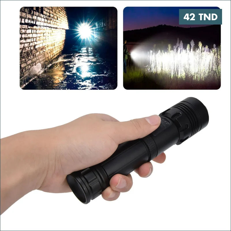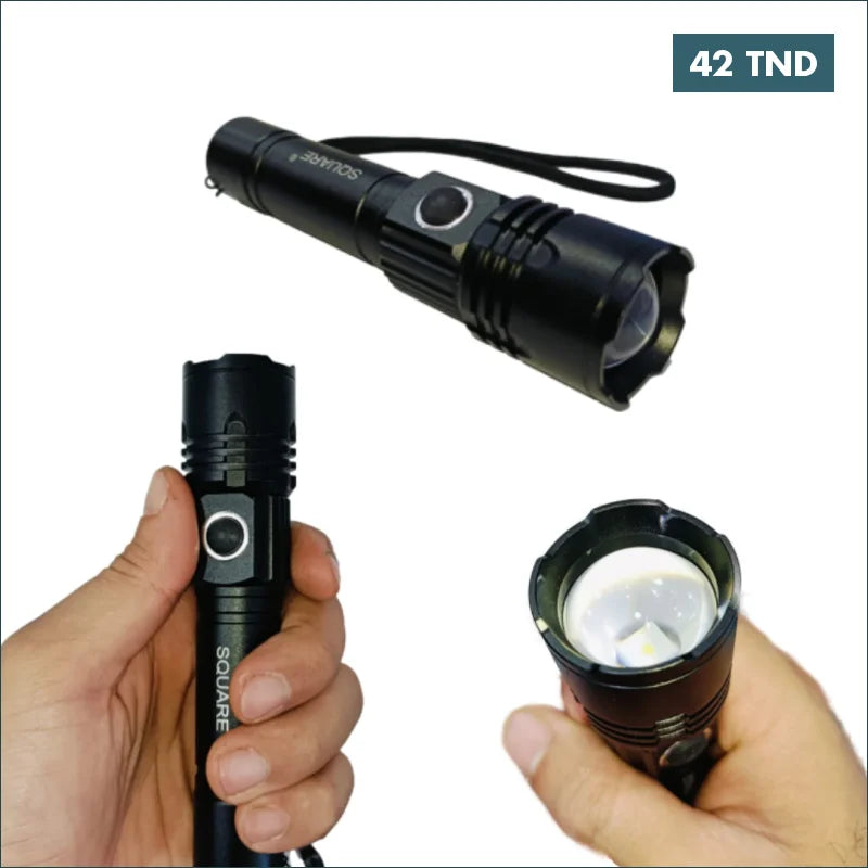 Lampe torche Ultra-lumineuse LED SQUARE rechargeable par USB, étanche, 1000 Metres,3000 Lumens