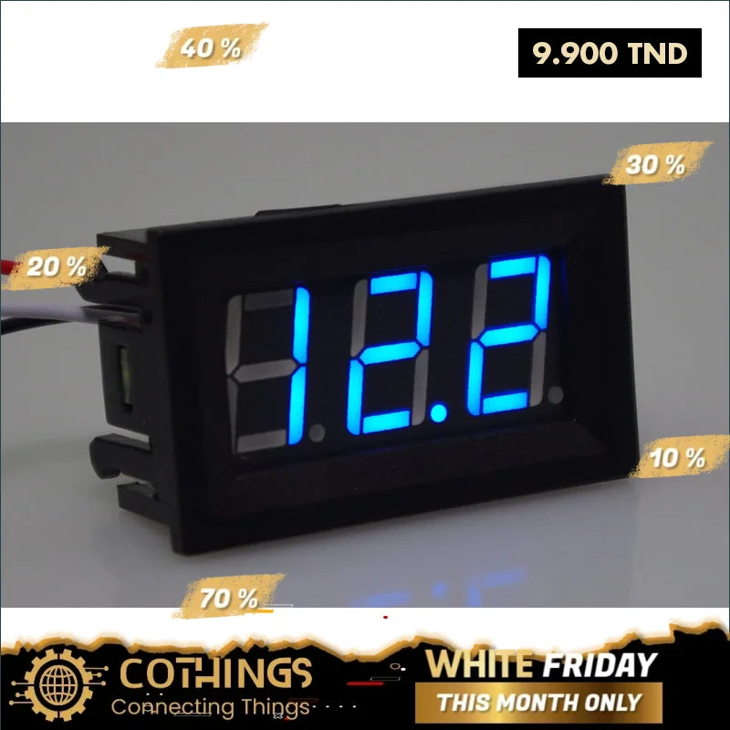 Voltmètre CC à Trois Fils Bleu 0-30V 0,56 pouce