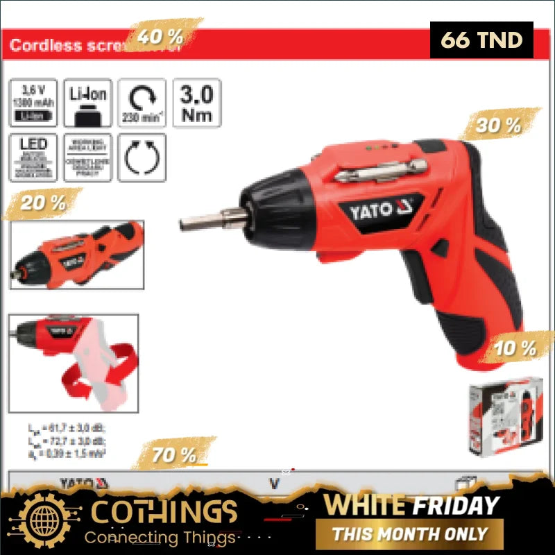 La visseuse-perceuse sans fil Yato YT-82760 est un outil compact et pratique, parfait pour les travaux de vissage et de petits perçages. Équipée d’une batterie intégrée 1,3 Ah – 3,6V, elle offre une autonomie suffisante pour les tâches courantes de bricolage à la maison ou en atelier.