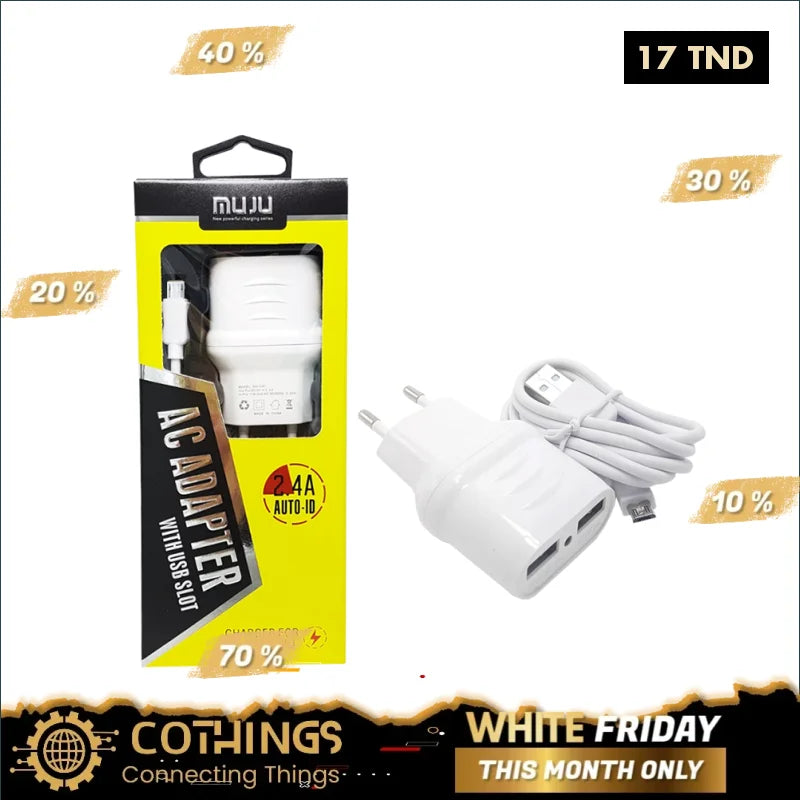 Sortie : 5V / 2.4A pour une charge rapide et efficace.
