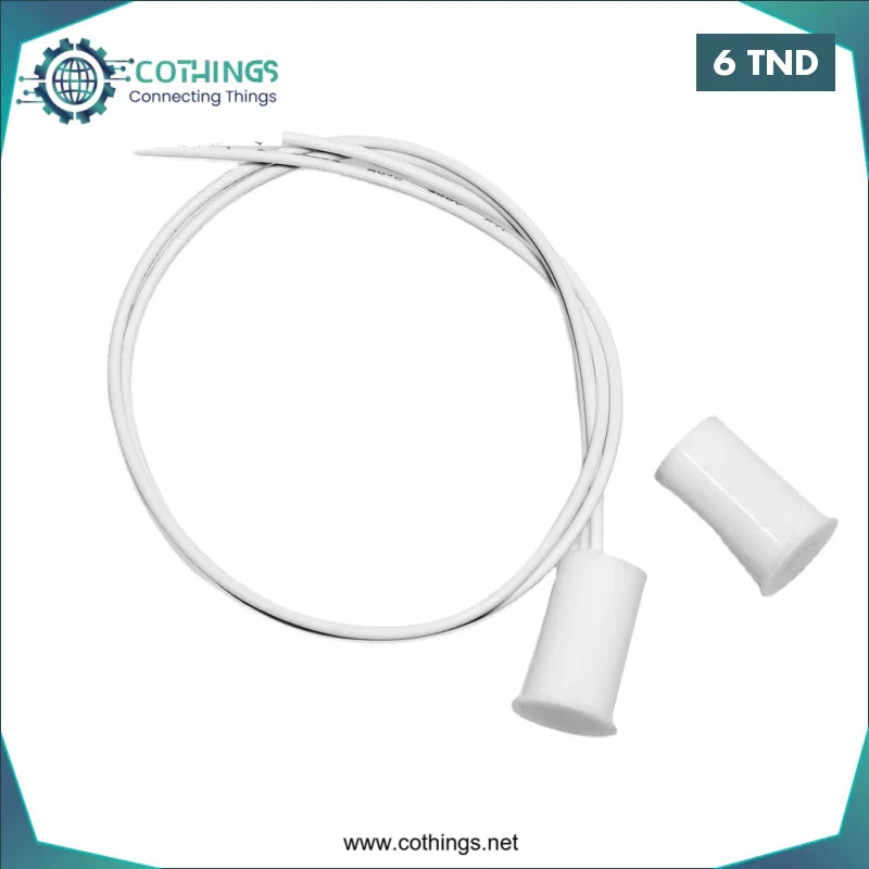 Fabriqué en plastique résistant, ce capteur fonctionne par contact sec (NO) : lorsque la porte ou la fenêtre s’ouvre, le contact s’interrompt, ce qui permet de déclencher une alarme ou d’envoyer un signal au système de sécurité.