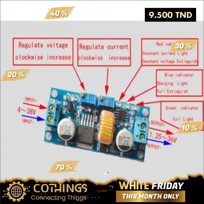 2. Plage de tension de sortie: 1.25-36v cc réglable