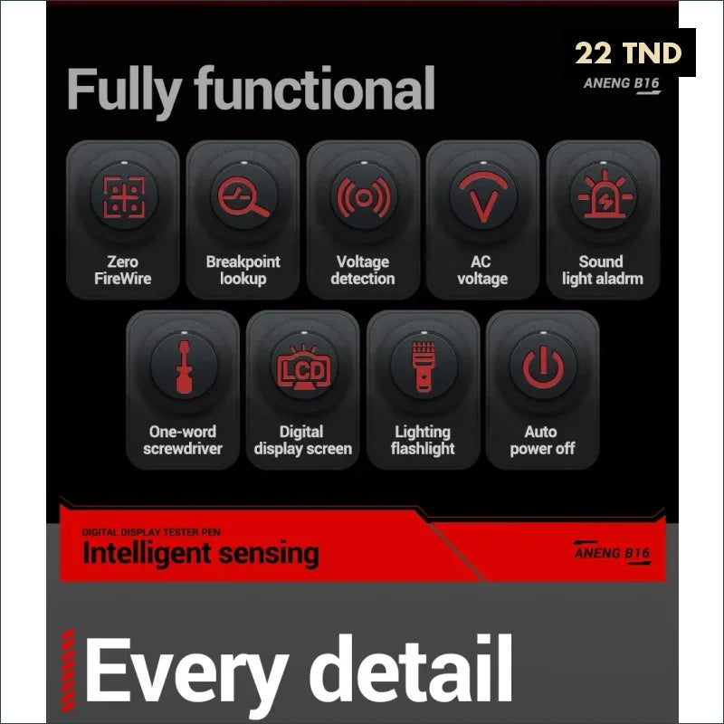 Testeur de tension numérique sans contact ANENG B16 – Stylo détecteur 12V à 300V pour électriciens
