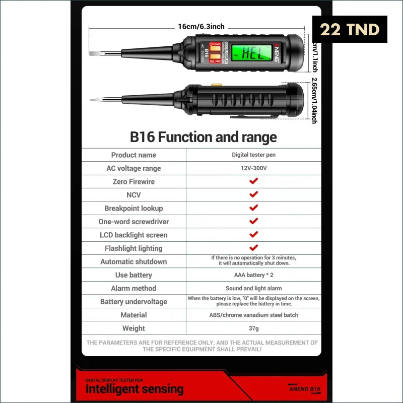 ANENG B16Stylo détecteur de testeur de tension numérique sans Contact 12V-300V, tournevis Portable, indicateur de tension, outils de mesure